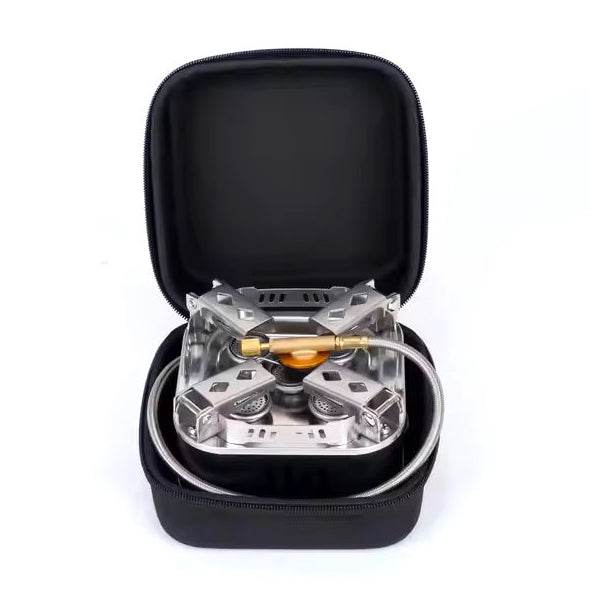 Powerful Five-Burner Camping Gas Stove with Storage Bag for Outdoors & Picnics - Windproof, Adjustable & Folding Design - 11000W