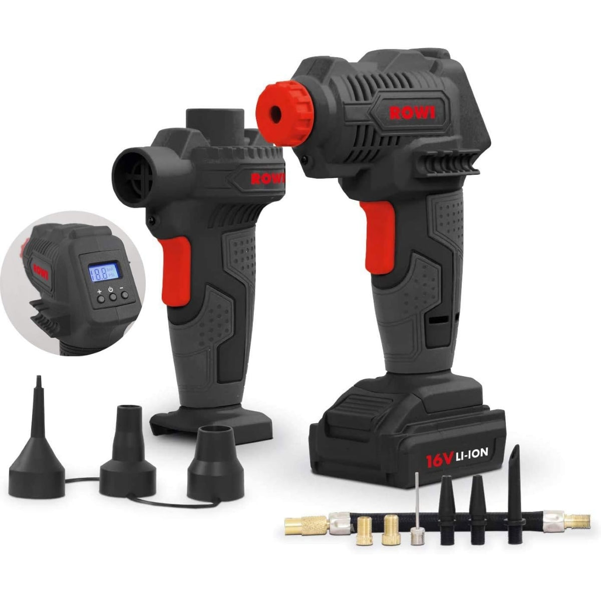 مجموعة ROWI DKL 141 A - ضاغط هواء ومضخة هواء لاسلكية، 14 قطعة