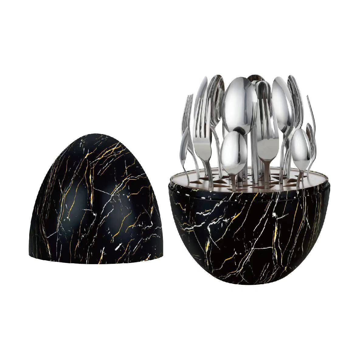 طقم أدوات مائدة فاخر مع علبة على شكل بيضة - 24 قطعة