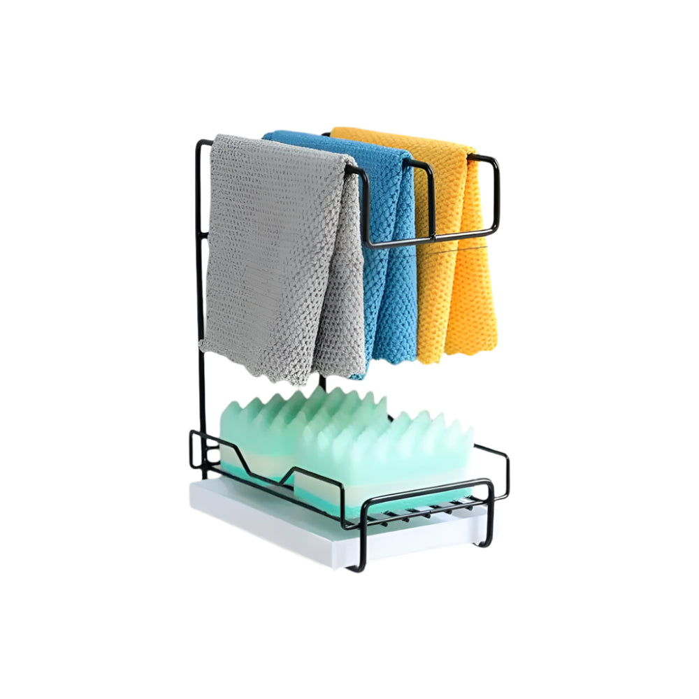 رف تخزين لحوض المطبخ بحامل معدني مثبت على الحائط - حامل أطباق وإسفنج ومناشف