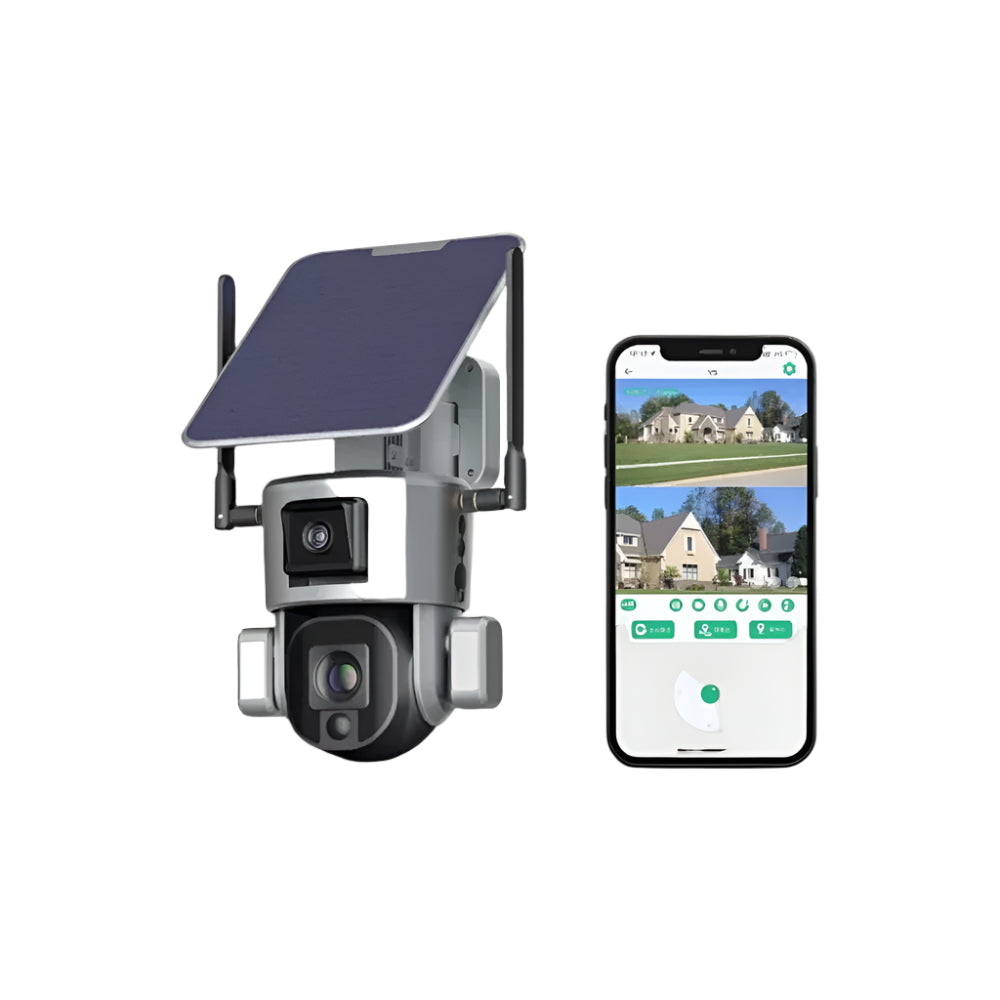 كاميرا مراقبة خارجية لاسلكية تعمل بالطاقة الشمسية وبتقنية WiFi مع عدسة مزدوجة وخاصية اكتشاف الحركة
