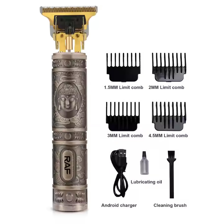 ماكينة قص الشعر الكهربائية الاحترافية RAF مع شفرات من الفولاذ المقاوم للصدأ ومجموعة حلاقة كاملة - 5 واط