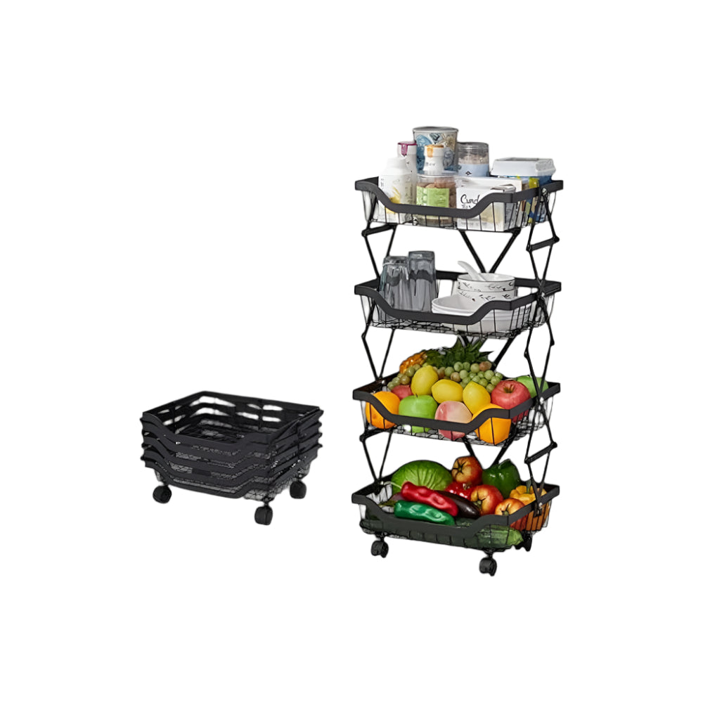 رف تخزين قابل للتعديل والطي والتحريك للاستخدام في المطبخ مكون من 5 طبقات