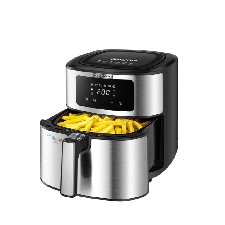 مقلاة هوائية 6 في 1 من بلاك آند ديكر، سعة 5.7 لتر، تحكم رقمي باللمس، توزيع هواء سريع، سلة سعة 5.7 لتر، درجة حرارة قابلة للتعديل من 80 إلى 200 درجة مئوية، إيقاف تشغيل تلقائي، مقبض بارد الملمس