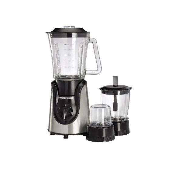 خلاط زجاجي مع مطحنة ومفرمة وقطاعة من بي+دي سعة 1.5 لتر وقوة 600 واط