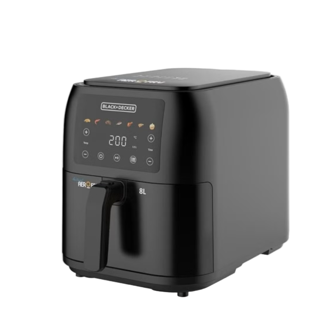 مقلاة هوائية أنيقة ونحيفة من بي+دي - سعة 8 لترات، 1700 واط، شاشة رقمية كاملة - 7 وظائف محددة مسبقًا - قائمة طعام ملونة