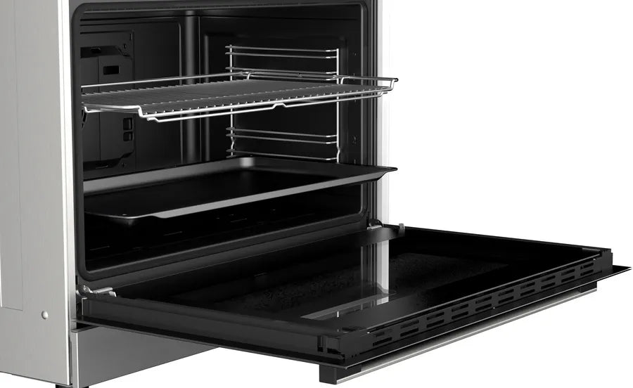 - فرن غاز عالي السعة: يوفر الفرن الكبير بسعة 77 لترًا مساحة واسعة للوجبات الكبيرة ويستخدم توزيع الحرارة بمساعدة المروحة لضمان الطهي المتساوي والنتائج الأسرع.