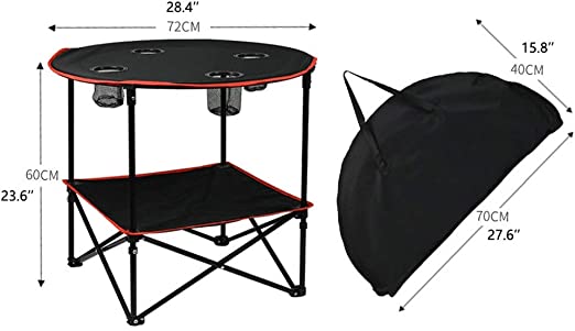 طاولة تخييم خارجية خفيفة الوزن وقابلة للطي ومحمولة مع 4 حاملات أكواب وحقيبة حمل للنزهات والحديقة