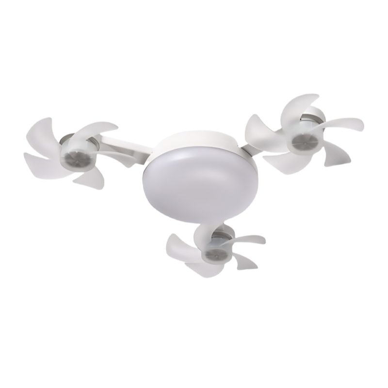 Drone Style Triple Head Ceiling Fan & LED Light with E27 Bulb Fit & Remote Control - Strong Wind & Energy Saving for Bedroom, Kitchen & Living Room