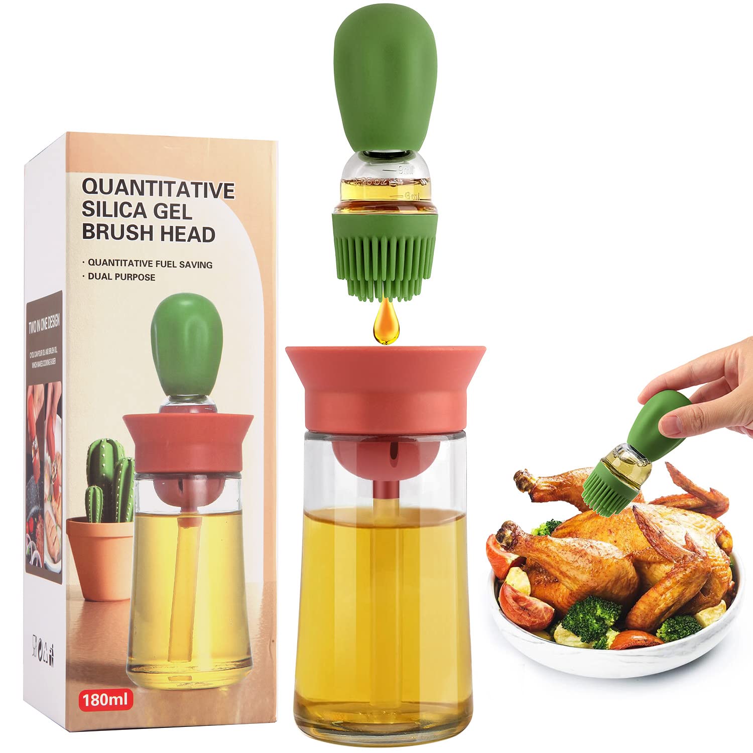 2-in-1 Oil Dispenser Bottle with Silicone Dropper & Brush with Scale and Lid for Accurate Cooking, Baking, Grilling & Basting