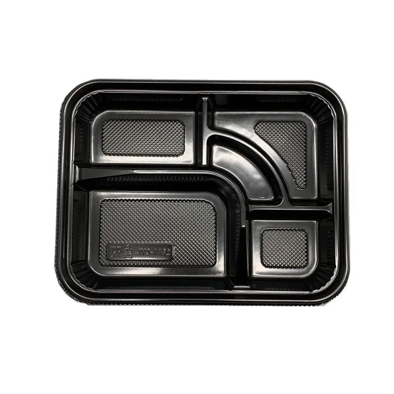 5-Compartment Disposable Plastic Food Container with Lid - 26.5 x 20.5 x 5 cm