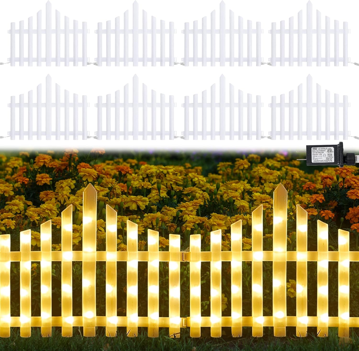 Brighten your outdoor area with this set of 8 waterproof LED fence lights. Featuring easy clip-on installation and multiple lighting modes, these durable lights cover 280 x 28.5 cm, adding warm white decorative charm to fences, patios, and gardens.