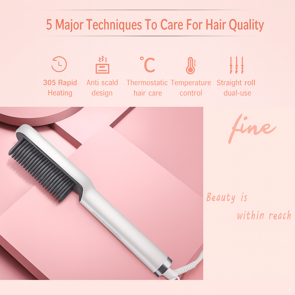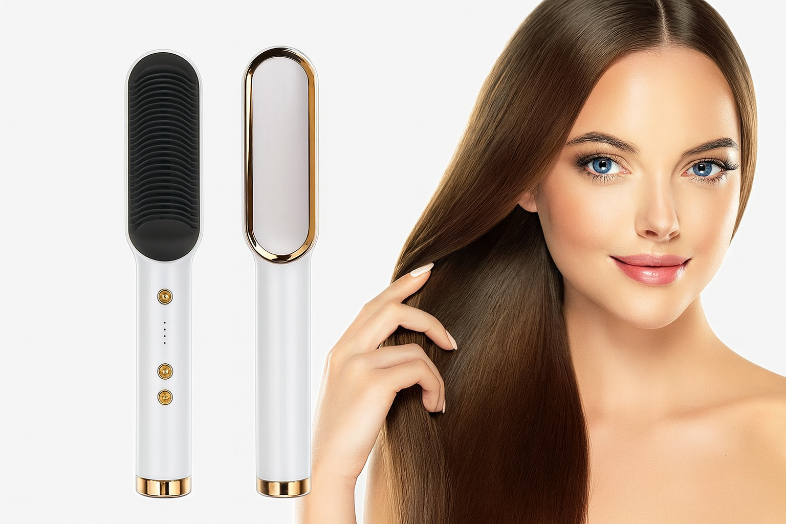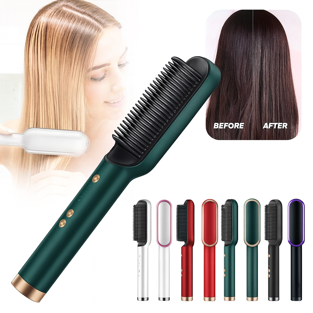 Achieve salon-quality hair at home with this innovative hot brush. Featuring 5 adjustable heat levels, it ensures safe, quick & smooth styling for every hair type. Dual-use design allows both straightening & curling with ease.