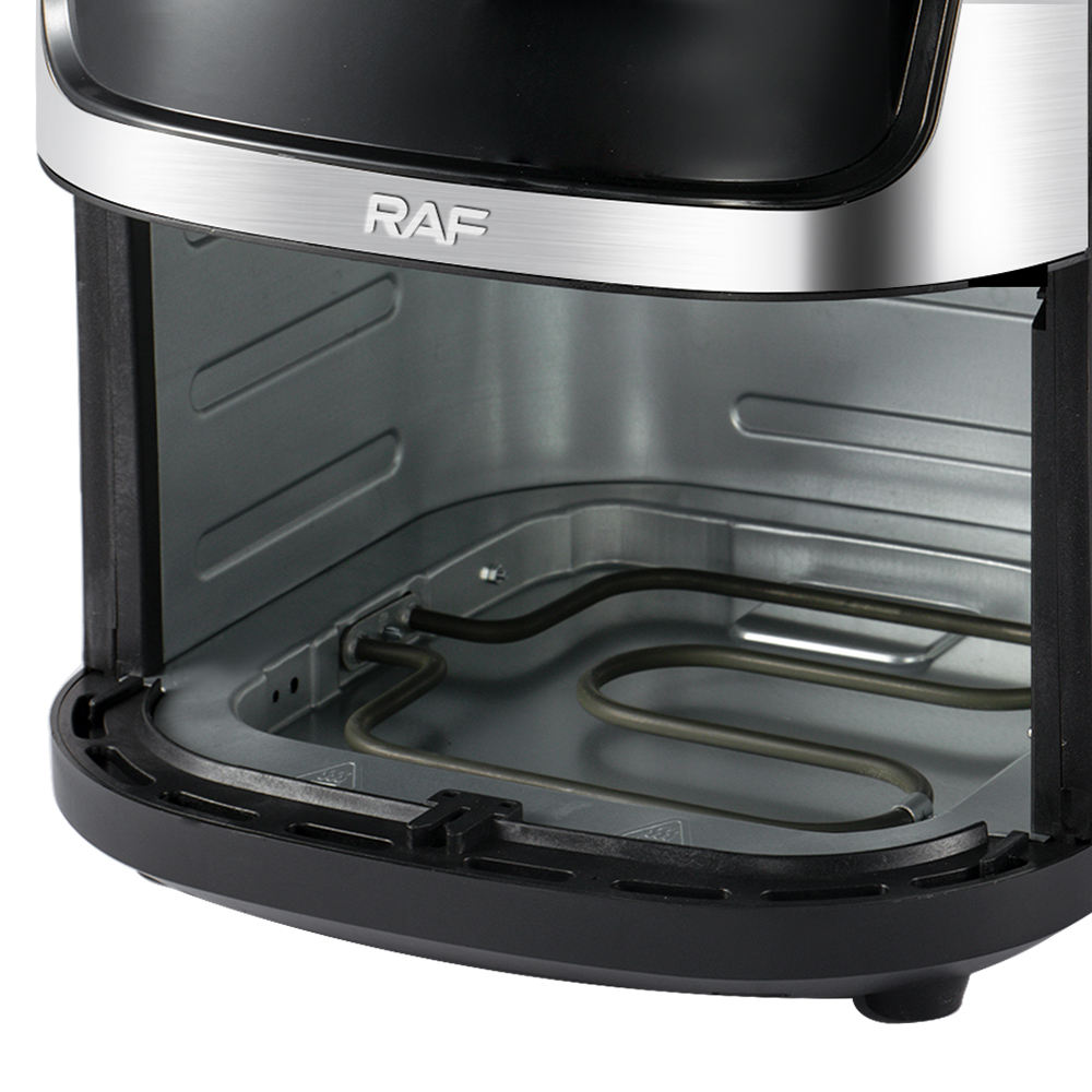 The RAF 9L Air Fryer is a modern solution for healthier and faster cooking. Featuring a spacious 9L capacity, it allows you to prepare family-sized meals with ease, from crispy fries and chicken wings to baked goods. With its advanced 360° hot air circulation technology, food cooks evenly with up to 80% less oil, making it a guilt-free alternative to traditional frying. The fryer is powered by a strong 1950W motor and includes a digital touch screen panel for effortless operation. Multiple preset cooking modes ensure convenience, while the metal inner cavity ensures durability and easy cleaning. Its sleek stainless-steel design with a front viewing window adds both style and practicality to your kitchen.