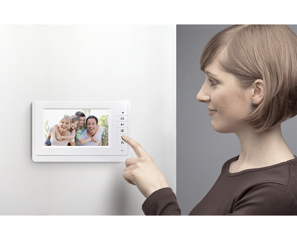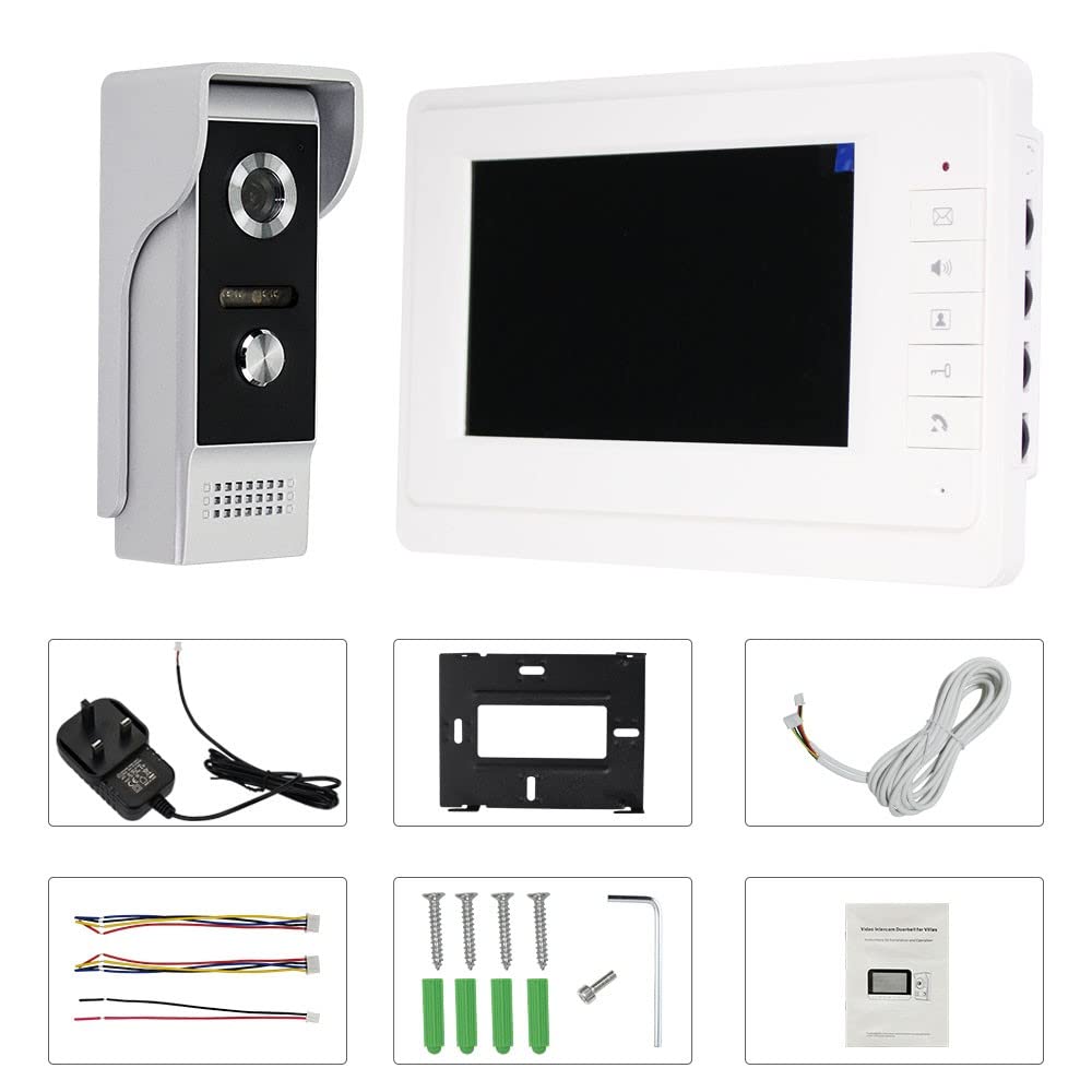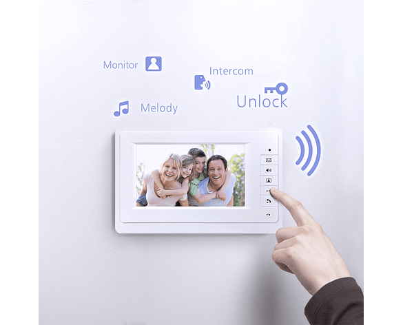 A wired video door phone system with a 7-inch TFT-LCD display, 700TVL night vision camera, and hands-free intercom. Supports remote unlocking, adjustable brightness and volume, and up to 100m transmission distance. Perfect for enhancing home and villa security.